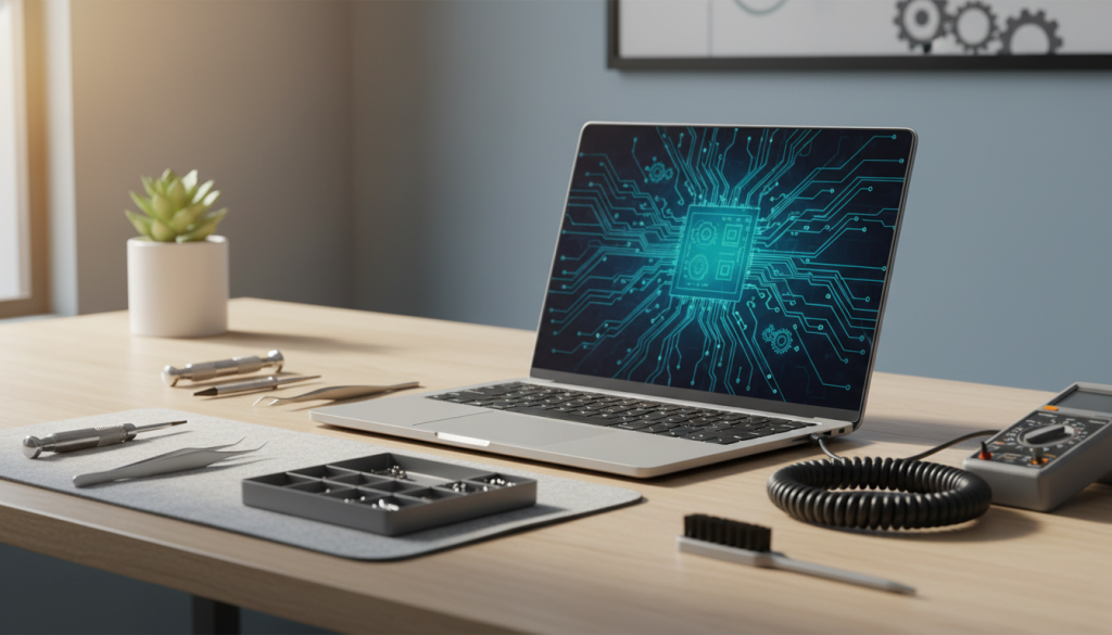 - 再組み立てと最終確認:動作に問題がないことを確認後、ベゼルを元通りに取り付け、再度全体の起動テスト、キーボード操作、各種ポートの動作などを入念にチェックし、修理完了となります。